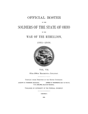 OFFICIAL ROSTER OF THE SOLDIERS OF THE STATE OF OHIO IN THE WAR OF THE REBELLION, 1861-1866.