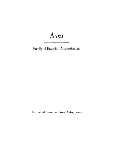 AYER: Ayer Family of Haverhill, Massachusetts (Extracted from Essex Antiquarian) (Softcover)