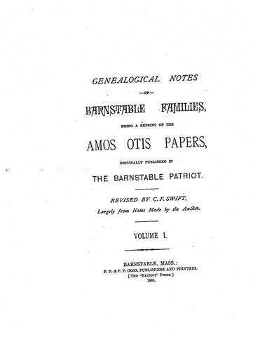 BASSET: Extracted from Genealogical Notes of Barnstable Families (Softcover)