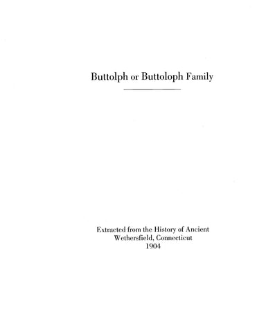 BUTTOLPH: Extracted from History of Ancient Wethersfield, Connecticut (Softcover)