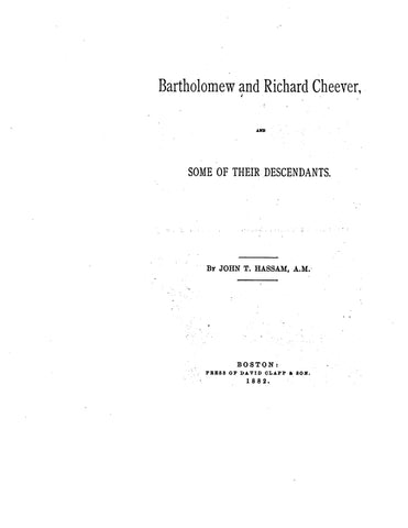 CHEEVER: Bartholomew and Richard Cheever and Some of their Descendants (Softcover)