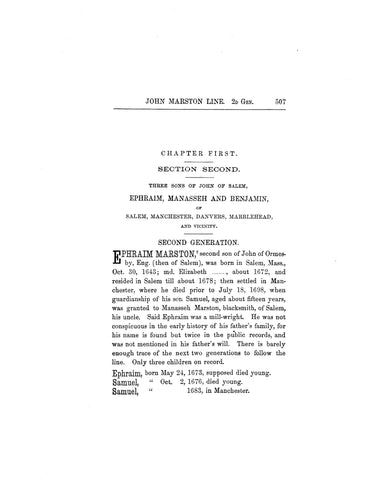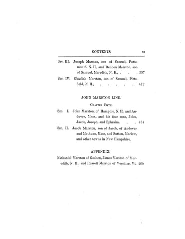 The Marston genealogy in two parts is an unchanged, reprint of the original edition of 1888.
