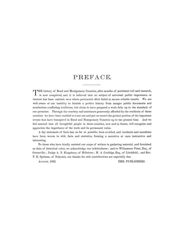 This book talks about the history of Montgomery and Bond counties in Illinois. And the book also includes some Illustrations.