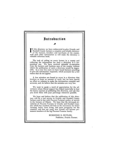 GRUNDY, IL: PRAIRIE FARMER'S DIRECTORY OF GRUNDY & KENDALL COUNTIES: