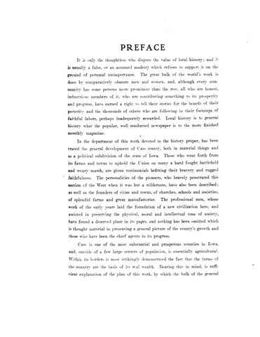 This book is a compendium of history and biography of Cass County Iowa. And the book also talks about the pioneer history and formation of the present county.