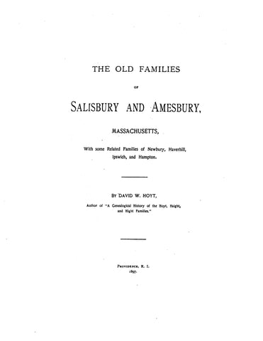 BLAIDSELL: Extracted from Old Families of Salisbury and Amesbury, Massachusetts (Softcover)