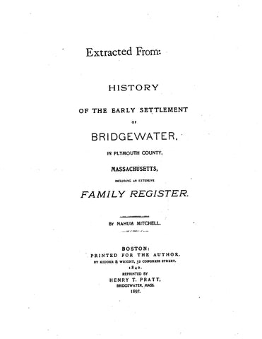 BRADFORD: Extracted from Early Settlement of Bridgewater, Massachusetts (Softcover)