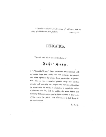Cary Memorials, a record of the descendants of John Cary of Somersetshire, Bristol, England who came to the Plymouth Colony about 1634, New England.