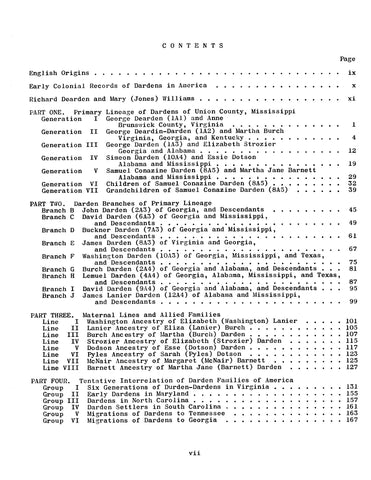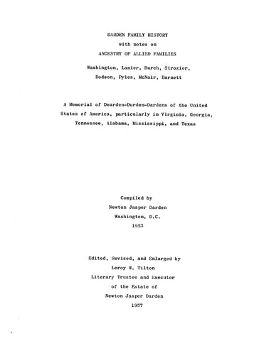 This book provides the history of the Darden Family, of English origin in America. The first part gives specifically a record of the line of Samuel Conazine Darden (1840-1927) of Union Co., Mississippi. Part two provides the branch lines. Part three maternal lines, Part four addresses interrelations and conflicting records or opinions.