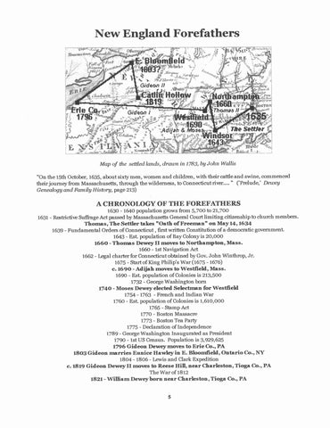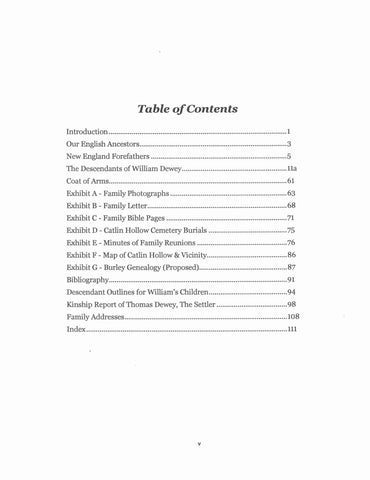 This is the history and the descendants of William Dewey of Pennsylvania, (1821-1899), thirteen generations to 1998. The English ancestors was Simeon Dewey born about 1550 in Sandwich, Kent, England. Thomas Dewey, the settler to America, was born in 1600 in Sandwich, Kent, England and came to America in 1630. He moved from Dorchester, Mass to Windsor, Connecticut.