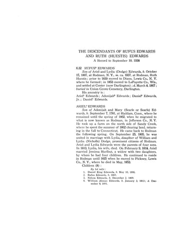 EDWARDS: The Descendants of Rufus Edwards (1807-1867) and his wife Ruth Huestis Edwards (1816-1890) 1936