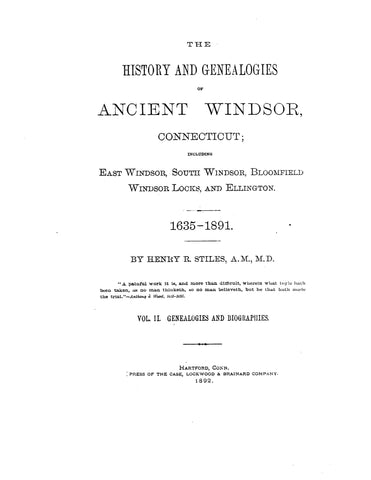 This is a booklet that provides the history and genealogy of the Ellsworth family. It was extracted from the book By Henry R. Stiles History and Genealogies of Ancient Windsor Connecticut. Softcover.