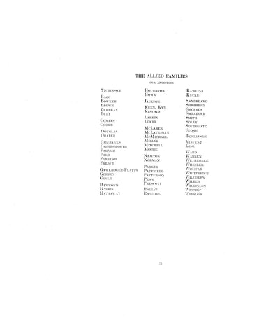 This publication gives the history and genealogy of the Fallass family of Boston, Massachusetts. William was born in England and married Dorcas Southgate in Boston. We see the first several generations in America, as well as numerous related names as shown on the image description.