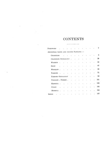 This book gives the ancestors and descendants of Edmond Chandler, Geoffrey Parsons and related families.
