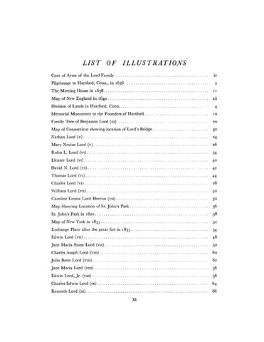 Certain members of the Lord family who settled in New York City in the early 1800's, descendants of Thomas Lord of Hartford, Connecticut. Thomas Lord (1585-ca.1667) married Dorothy Bird, and emigrated in 1635 from England to Newtown, Massachusetts, moving in 1636 to Hartford, Connecticut. They had eight children. He was a man of means, position, and influence. Descendants lived in New England, New York, New Jersey, Ohio and elsewhere.