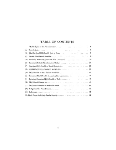 MacDONALD - McDONALD Family records Explore historical collections, such as birth records, death certificates, immigration data, and more about the Mcdonalds family and ancestor's. From the Table of contents we see