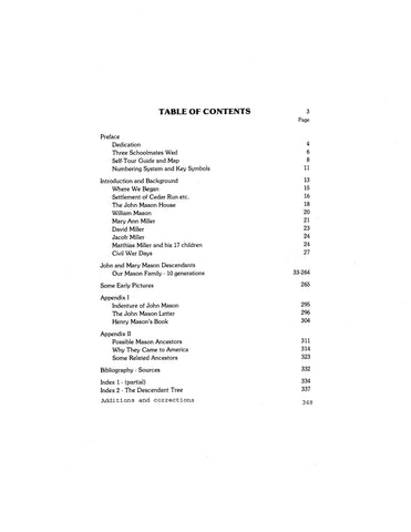MASON - MILLER; John Mason and Mary Ann Miller of Virginia 1986