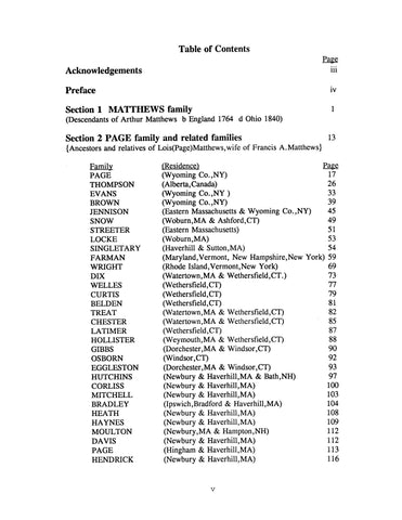 This book presents the genealogy of the Matthews family, and related families, Page, Wilson, Dean, and Bartlett. It includes ancestry and numerous family charts including that of Francis Arthur Matthews and Lois Page.