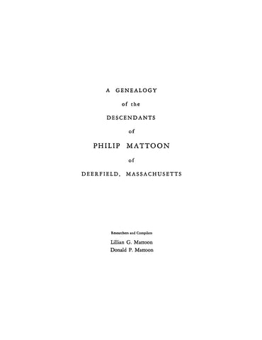MATTOON: A genealogy of the descendants of Philip Mattoon of Deerfield, MA 1965