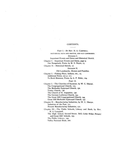 This book talks about the history of the town of Seymour Connecticut from the past to the present. And in the book it also talks about some of the old Landmarks in the town as well as the French and Indian wars as well as talking about some other events.
