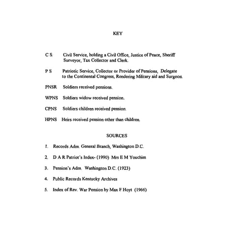 Kentucky Revolutionary War soldiers and patriots. From the book intro, the names listed in this book are soldiers who were born in one of the original thirteen colonies or in Europe before 1776. These soldiers and patriots settled in the state of Kentucky after the war. Kentucky was established as a state in 1780 and divided into three parent counties